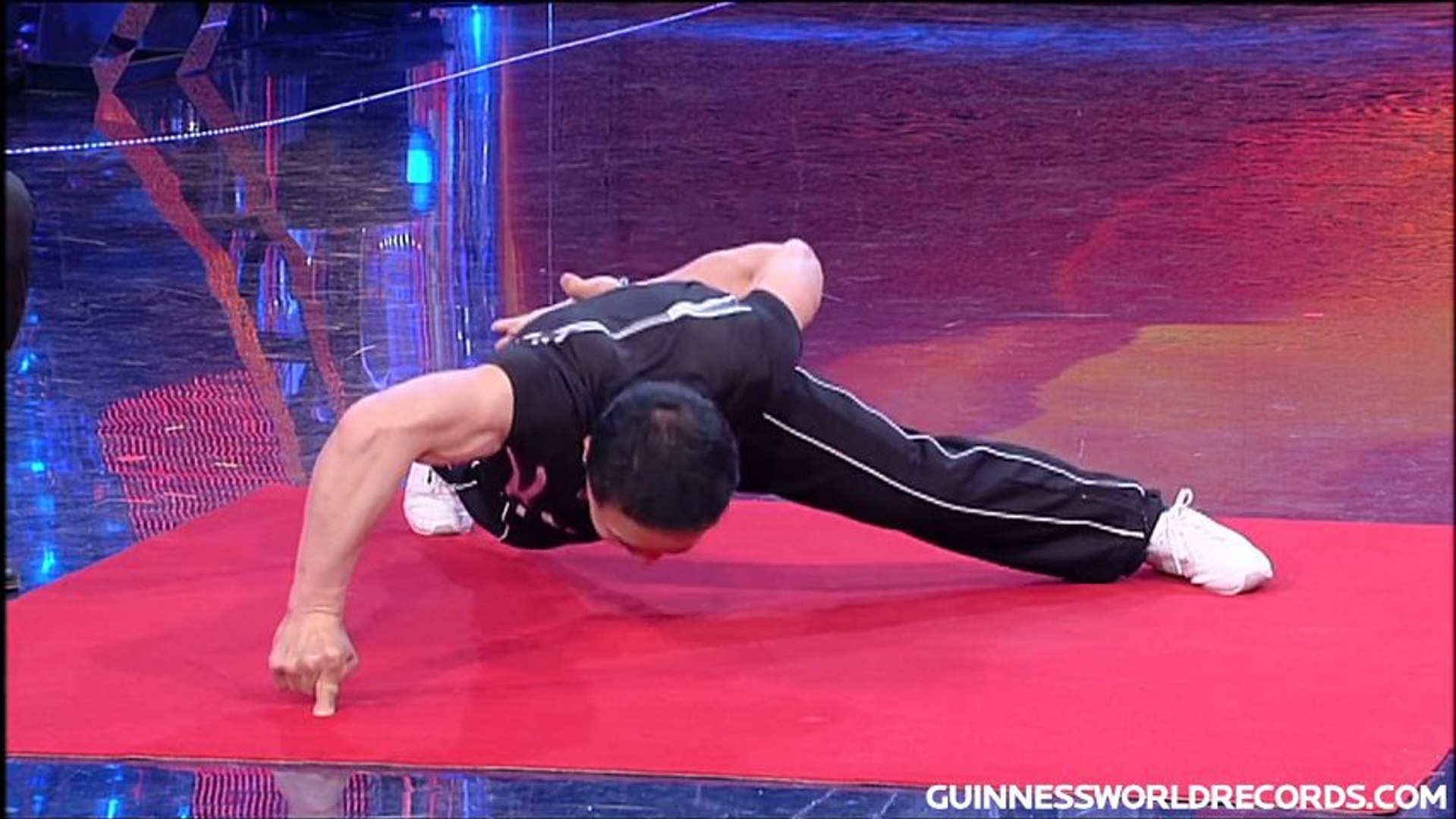 Le chinois xie guizhon g vient de battre son propre record du monde de pompes sur un doigt en moins de 30 secondes lors du guinness world records classics.